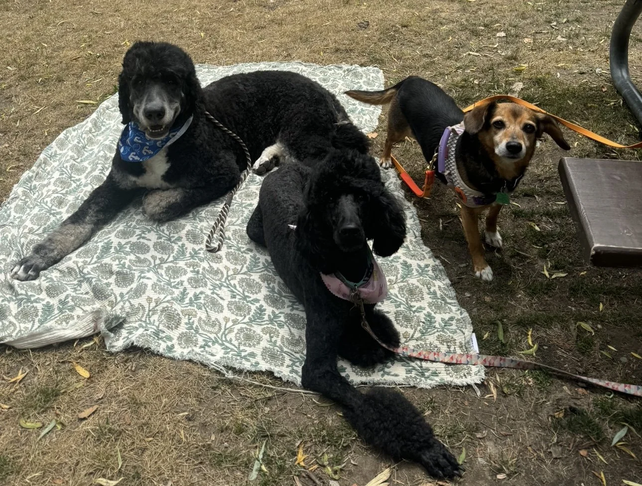 Our three dogs - Roach, Salem, and Bella- are expert members of our crew and can’t wait to welcome your pet to our home!